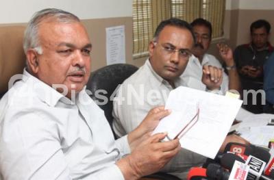 Photo Caption : Minister Ramalinga Reddy with MLA and KPCC Working President, Dinesh Gundu Rao and others addressing a press conference at KPCC Office, in Bengaluru on Wednesday 24th January 2018