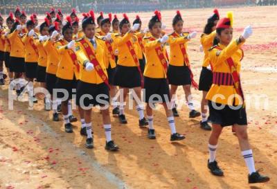 Photo Caption : School students at the rehearsals for the Republic Day parade at Manekshaw Parade Grounds, in Bengaluru on Wednesday 24th January 2018