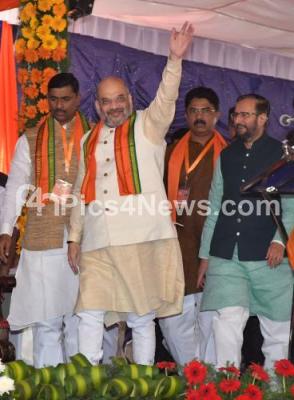 Photo Caption : BJP President Amit Shah with BS Yeddyurappa, BJP State President and other BJP leaders inaugurated the BJP Parivartana Yatra meeting in Mysuru on Thursday 25th January 2018