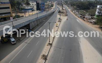 Photo Caption : Busy Mysore Road in a deserted look as local transport were off the roads following Pro Kannada organizations called for a Karnataka bandh condemning the Mahadayi water dispute tribunal order, in Bengaluru on Thursday 25th January 2018