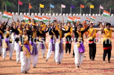 Students perform cultural dance at the 69th Republic Day celebrations at Manekshaw Parade Grounds, in Bengaluru on Friday 26th January 2018