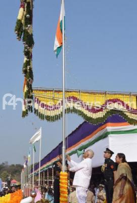 Photo Caption : Governor of Karnataka Vajubhai Vala hoisting the National flag during 69th Republic Day celebrations at Manekshaw Parade Grounds, in Bengaluru on Friday 26th January 2018