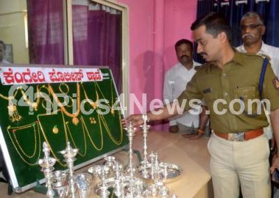 Photo Caption : DCP Anuchet and Dr S Prakash inspecting the recovered jewels and mobiles during a press conference at Upparpet Police station, in Bengaluru on Saturday 27th January 2018