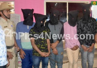 Photo Caption : Robbers Soheb Pasha, Zubair Pasha, Maohammed Afridi, Syed Ameer and Mohammed Ummar, who were arrested by Bytarayanapura police personnel in robbery case, in Bengaluru on Saturday 27th January 2018