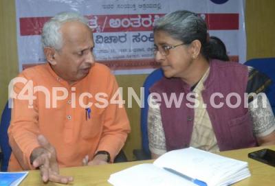 Photo Caption : Dr Narahalli Balasubramanya, Chairman KS Narasimha Trust Bangalore, with Dr Mythili Rao, Dean of Jain University of Humanities Dept seen at the seminar on Literature at Jain University, Palace Ground, in Bengaluru on Wednesday 31st January 2018