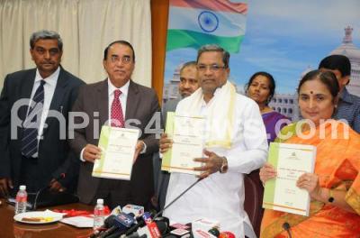 Photo Caption : CM Siddaramaiah with Ratna Prabha, Chief Secretary Govt of Karnataka and others releasing the Sixth State Pay Commission Report at Krishna, in Bengaluru on Wednesday 31st January 2018