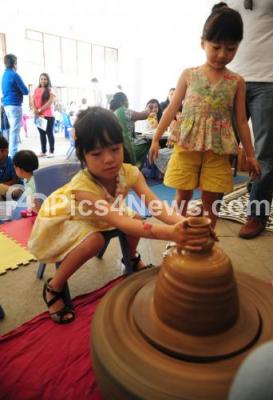 Photo Caption : Japanese children seen making clay pots during the "Japan Habba 2018" an Indo Japan cultural exchange programme at JN Tata Auditorium, IISC, in Bengaluru on Saturday 3rd February 2018