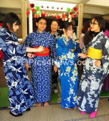Photo Caption : Indians seen trying Japanese dress during the "Japan Habba 2018" an Indo Japan cultural exchange programme at JN Tata Auditorium, IISC, in Bengaluru on Saturday 3rd February 2018