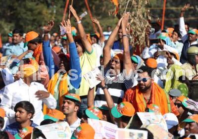 Photo Caption : Crowd gathered for the valedictory of BJP Parivartana Rally at Palace Grounds, in Bengaluru on Sunday 4th February 2018