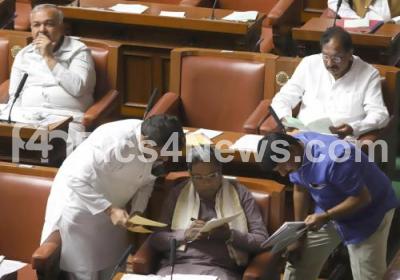 Photo Caption : CM Siddaramaiah with Ministers M B Patil, K J George, Home Minister Ramalinga Reddy and BJP MLA Narayanswamy during Assembly session at Vidhana Soudha, in Bengaluru on Tuesday 6th February 2018