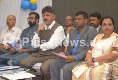 Photo Caption : Minister DK Shivakumar with MLA NA Harris and other Bescom officers addressing during the launch of “Savi Kiranaâ€, all services in 24 hours by Bescom during a program at Bescom Office, MG Road, in Bengaluru on Wednesday 7th February 2018