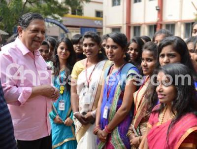 Former Justice and Lokayukta Santhosh Hedge interacting with students during the Judicial and Journalism Seminar at National College, Jayanagar, in Bengaluru on Wednesday 7th February 2018