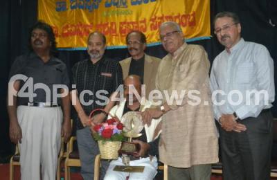 Photo Caption : Dr Mogalli Ganesh, Writer, being presented with Dr GSS Award by Dr HS Venkatesh Murthy, Agrahara Krishnamurthy, YK Maddukrishna and others during the Dr GSS Award program at Senate Hall, Central College, in Bengaluru on Wednesday 7th February 2018