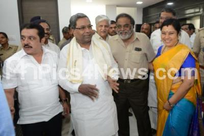 Photo Caption : CM Siddaramaiah with MLA Ambareesh, MLC Tara and MLA Zameer Ahmed Khan seen during the inauguration of the Film Artists Association Building at Chamarajpet, in Bengaluru on Thursday 8th February 2018