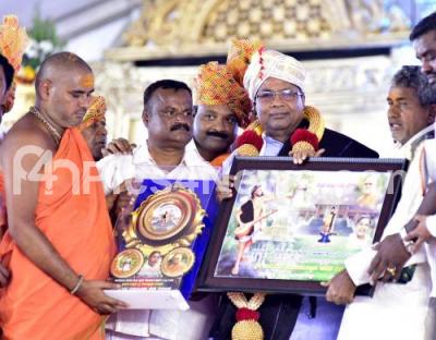 Photo Caption : CM Siddaramaiah being felicitated during the inauguration of the silver jubilee celebration of kaginele mahasamstana and kanaka Gurupeeta at Belludi, Davanagere District on Friday 9th February 2018