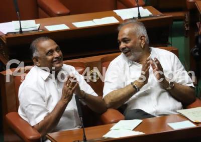 Photo Caption : Minister A Manju and MLA Abhay Chandra Jain during Assembly Session at Vidhana Soudha, in Bengaluru on Friday 9th February 2018