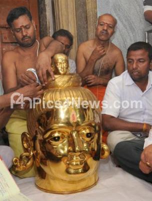 Photo Caption : The gold facemask of Shiva which will be adorn to Shivalinga on Mahashivaratri Festival seen after it was brought from the treasury at Sri Trineshwaraswamy Temple in Mysore Palace premises, in Mysore on Monday 12th February 2018