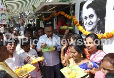 Photo Caption : MLA Dinesh Gundu Rao inaugurating the Indira mobile canteen at Srirampura ward, also seen are Congress leader Sampath Kumar and others, in Bengaluru on Tuesday 13th February 2018