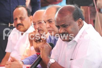 Photo Caption : JDS State President H D Kumarswamy addressing press conference with JDS leaders about JDS convention at Nitte, Yelahanka, in Bengaluru on Tuesday 13th February 2018