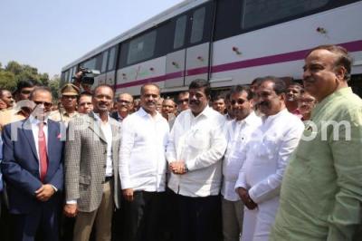 Photo Caption : Union Minister Ananth Kumar with Minister KJ George, MP P C Mohan, BMRCL M D Mahdendra Jain and others during handing over of the intermediate car units to BMRCL by BEML at BEML premises, in Bengaluru on Wednesday 14th February 2018