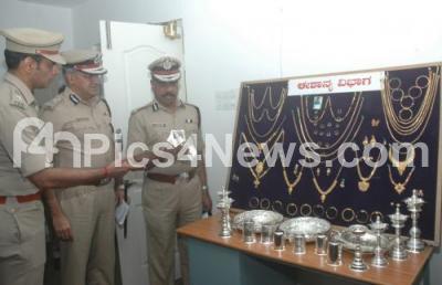 Photo Caption : T Sunil Kumar Commissioner of Police Bengaluru City briefed the media on the recovery of rupees Five lakh currencies from three member gang from a auto, who stole the cash to be replenished to ATMs, as they were to handle the cash for various ATMs in Kothanur and 650 grams of Gold Jewelry were recovered from the interstate gang of Rajasthan in RIFLE snatching case in Kodigehalli limits recently, which was on display at Police Commissioners office, in Bengaluru on Thursday 15th February 2018
