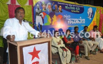 Photo Caption : Actor Prakash Raj addressing the National Seminar on “The Voice of Peace†, organised by Students Federation of India at Kodajji Basappa Auditoirum, Bharath Scouts and Guides, in Bengaluru on Saturday 17th February 2018