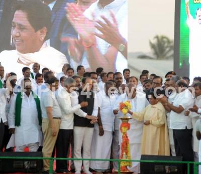 Event Description : JDS mega rally on the outskirts of Bengaluru at Yelahanka resulted in major traffic jam as lakhs of people arrive on Airport road choking major road, Rally led by H D Devegowda and Mayawati, from BSP, JD(S) state president H D Kumaraswamy