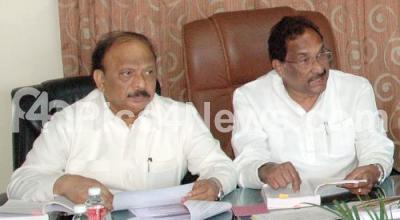 Photo Caption : Ministers KJ George and Roshan Baig addressing a meeting on Change of Land Use (CLU) guidelines at Vidhan Soudha, in Bengaluru on Monday 19th February 2018