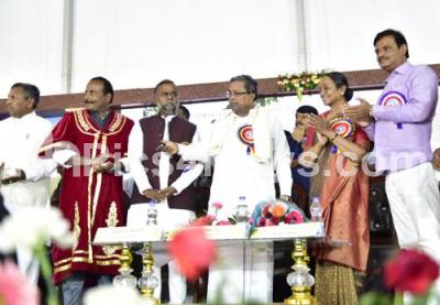 Photo Caption : CM Siddaramaiah with Meira Kumar, Former Speaker, Mayor Sampath Raj and others laid foundation for Dr Babu Jagjivan Ram Study and Research Centre, in Bengaluru on Wednesday 21st February 2018