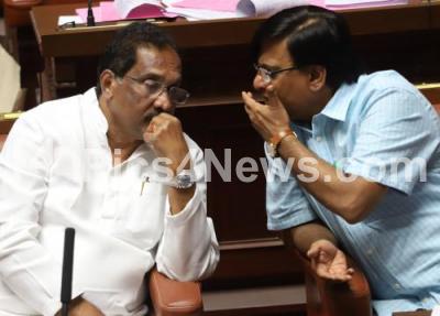 Photo Caption : Ministers KJ George and Basavaraj Rayareddy seen during the Council Session at Vidhana Soudha, in Bengaluru on Thursday 22nd February 2018