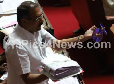 Photo Caption : BJP MLC Amarnath Patil seen arguing during the Council Session at Vidhana Soudha, in Bengaluru on Thursday 22nd February 2018