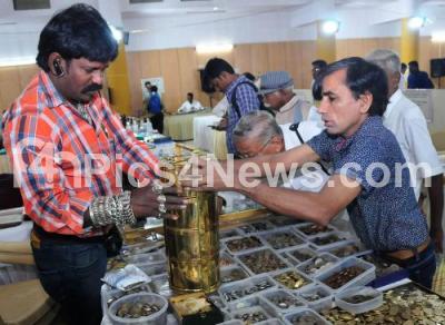 Photo Caption : Visitors seen at the National Numismatic Exhibition of Coins, Stamps, Bank Notes , Artifacts and Antiquities at Shikshakara Sadan, in Bengaluru on Friday 23rd February 2018