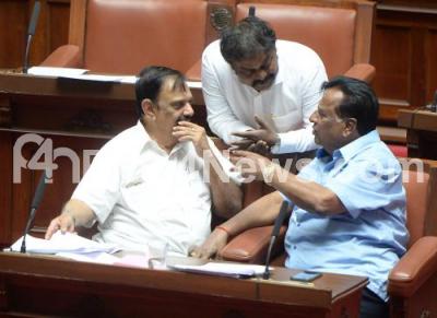 Photo Caption : MLC s Shravana and Sandesh Nagaraj in conversation at the Council Session at Vidhana Soudha, in Bengaluru on Friday 23rd February 2018