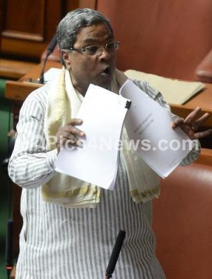 Photo Caption : CM Siddaramaiah addressing at the Assembly Session at Vidhana Soudha, in Bengaluru on Friday 23rd February 2018