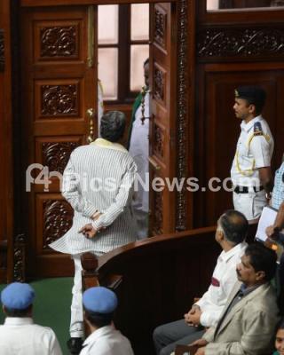 Photo Caption : CM Siddaramaiah seen leaving the Assembly Hall after adjournment of the Assembly Session at Vidhana Soudha, in Bengaluru on Friday 23rd February 2018