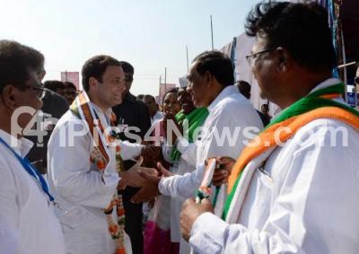 Photo Caption : Congress President Rahul Gandhi seen meeting the KPCC workers at the Sthree Shakthi Conference at Tikota on Saturday 24th February 2018