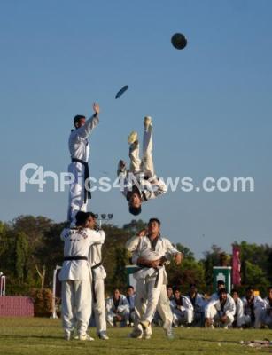 Photo Caption : Army performed tent pegging, Mule Trick Riding, Body Building and Taekwondo during the Horse Show at ASC College and Centre, Old Airport Road, in Bengaluru on Saturday 24th February 2018