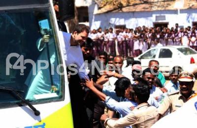 Photo Caption : AICC President Rahul Gandhi interacting with the public during “Congress Janashiravada Yatre†,in Bagalkot District on Monday 26th February 2018