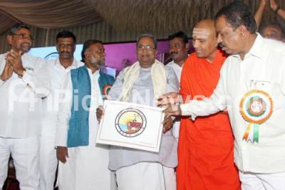 Photo Caption : CM Siddaramaiah with Minister H Anjaneya, Sri Purushotamanandapuri Swami, Huchchapap, President, D Devraj Urs Backward classes development board and others at the inauguration of Karnataka Uppara Development Board at Palace Grounds, in Bengaluru on Friday 2nd March 2018