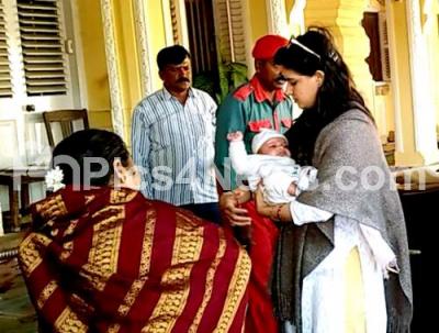 Event Description : Newborn Prince of Mysuru Aadyaveer Narasimharaja Wadiyar being carried by mother Trishika Kumari, accompanied by Yaduveer Krishnadatta Chamaraja Wadiyar on their arrival at Mysuru Palace on Friday 2nd March 2018