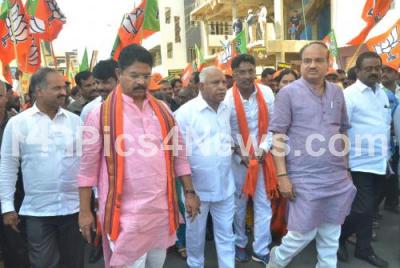 Photo Caption : BJP State President B S Yeddyurappa with Union Minister Ananth Kumar, MP P C Mohan and State BJP Leaders and supporters took out “Save Bengaluru†(Bangalore Rakshisi) campaign rally against state government at KR Puram, in Bengaluru on Saturday 3rd March 2018