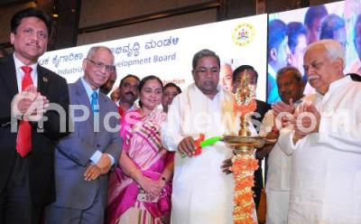 CM Siddaramaiah with Infosys Founder Narayan Murthy, Minister R V Deshpande, Mayor Sampath Raj, Chief Secretary Rathna Prabha and others inaugurated the Golden Jubilee Celebrations of Karnataka Industrial Development Board at Hotel, in Bengaluru on Sunday 4th March 2018