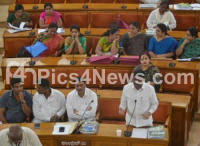 Photo Caption : Ruling party councilors addressing the BBMP Council Session at BBMP, in Bengaluru on Wednesday 7th March 2018