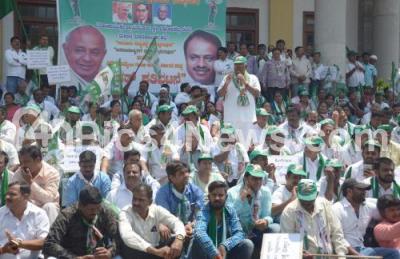 Photo Caption : JDS Leaders and members protesting against the recent attack on Lokayukta Justice Vishwanatha Shetty at Town Hall, in Bengaluru on Friday 9th March 2018