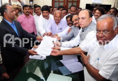 BM Farooq, JDS Candidate for Rajya Sabha, filing his nomination in the presence of JDS leaders at Vidhan Soudha, in Bengaluru on Friday 9th March 2018