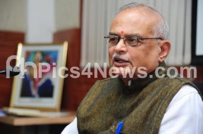 Photo Caption : V Nagaraj, RSS leader addressing press at Rastrotana office, in Bengaluru on Thursday 15th March 2018