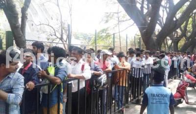 Football fans from around the city and also from outstation, stand in a long queue at Kanteerava stadium on Thursday, to purchase tickets for ISL (Indian Soccer League) finals to be held on Saturday between Bengaluru FC and Chennayin FC, in Bengaluru on Thursday 15th March 2018
