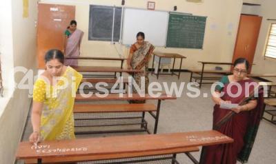 Photo Caption : Preparations for the SSLC Board Examinations starting tomorrow across Karnataka, on Thursday 22nd March 2018