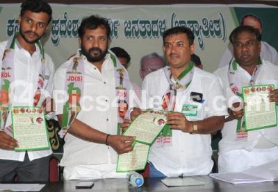 Photo Caption : JDS Students leaders seen releasing the JDS brochures for the upcoming Assembly Elections during the JDS Students Union meeting at JDS office, in Bengaluru on Saturday 24th March 2018