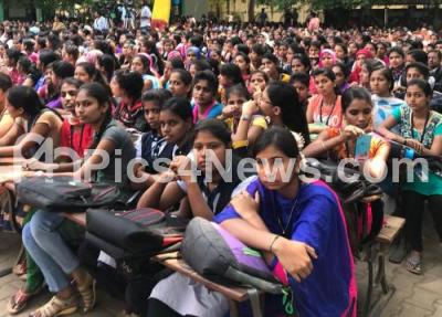 Photo Caption : Students of Maharani College seen at the interaction program with AICC president, Rahul Gandhi, at Maharani College in Mysuru on Saturday 24th March 2018